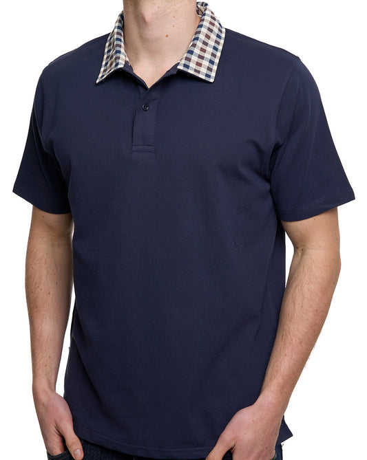 Aquascutum Iconic Club Poloshirt mit Karo-Einsatz, Marineblau