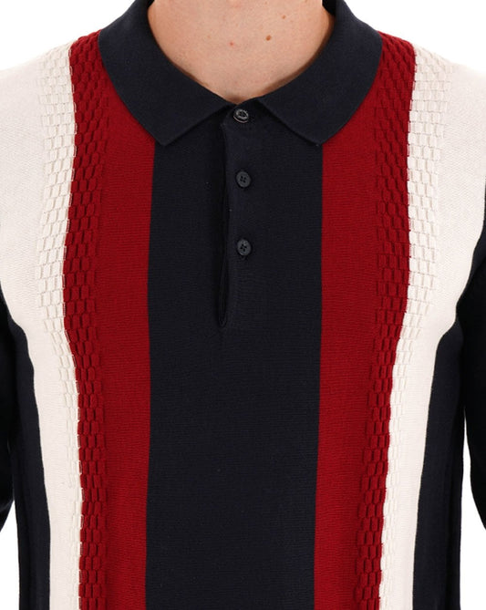 Ben Sherman Langarm-Strickpolo mit vertikalen Streifen, Dunkelblau