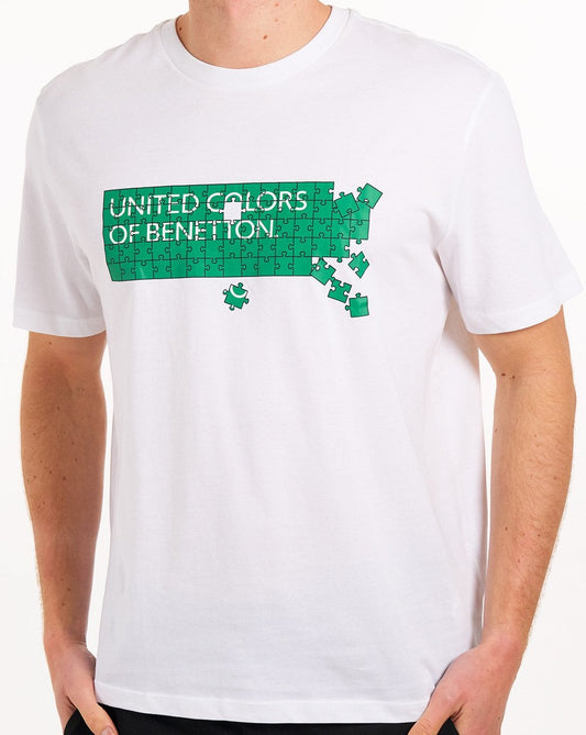 Benetton Jigsaw Logo T-Shirt Weiß/Grün