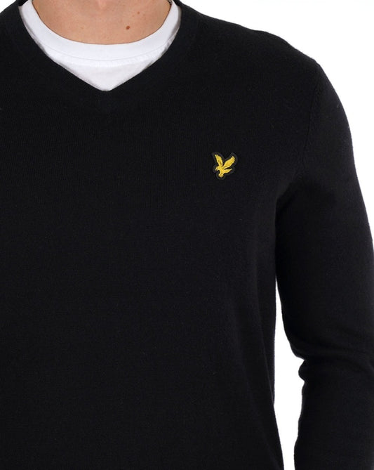 Lyle & Scott Baumwoll-Merino-Pullover mit V-Ausschnitt, Jet Black