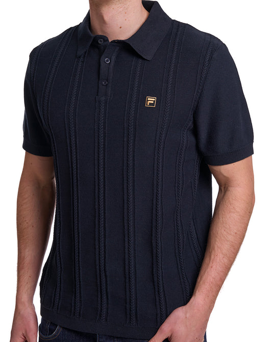 Fila Gold Barns Cable Knit Polo Schwarz