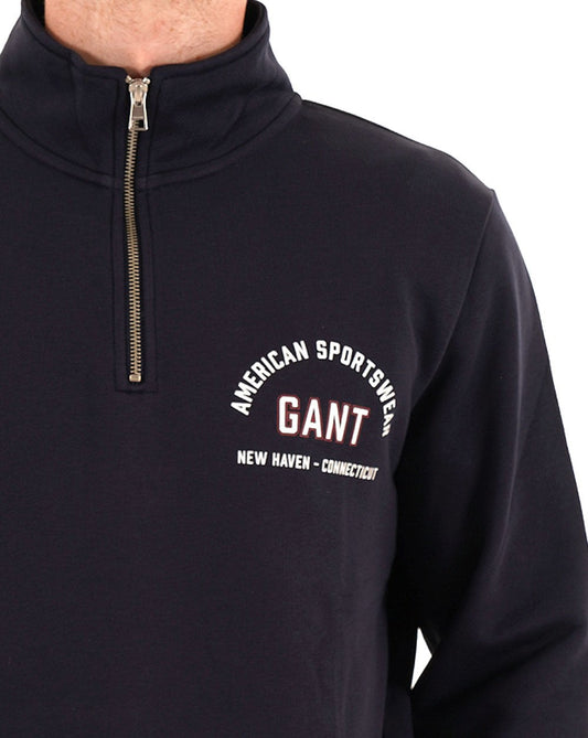 Gant Graphic Half Zip Sweatshirt Navy Blue