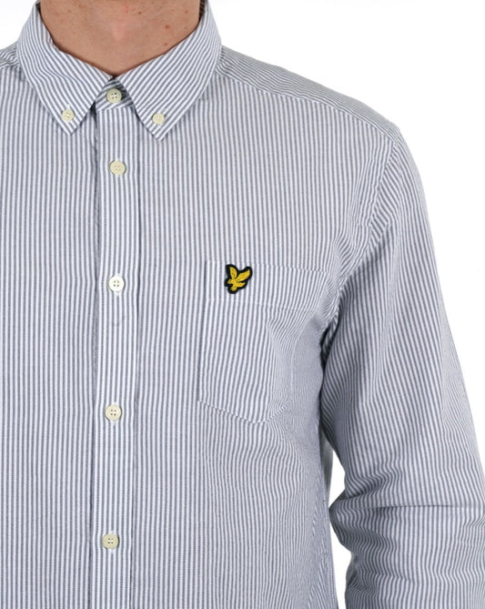 Lyle & Scott Gestreiftes Oxford-Hemd Gun Metal/Weiß