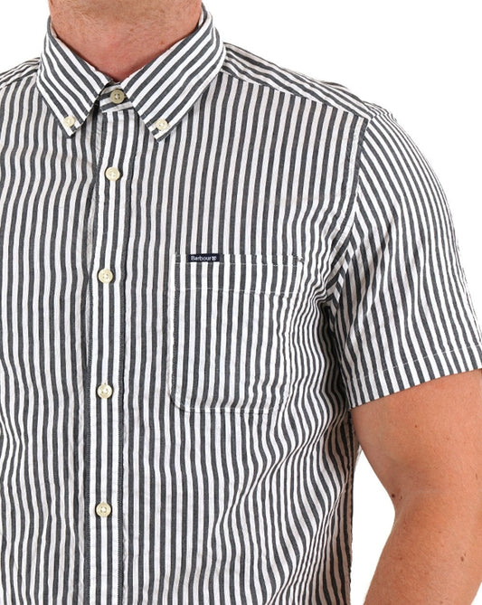 Barbour Cresswell Seersucker Kurzarmhemd Marineblau