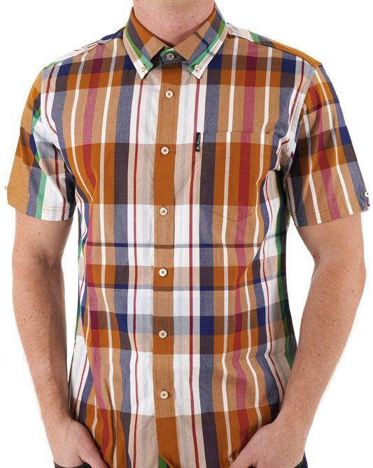 Ben Sherman – Kurzärmliges Hemd mit großem Madras-Karomuster, Karamell