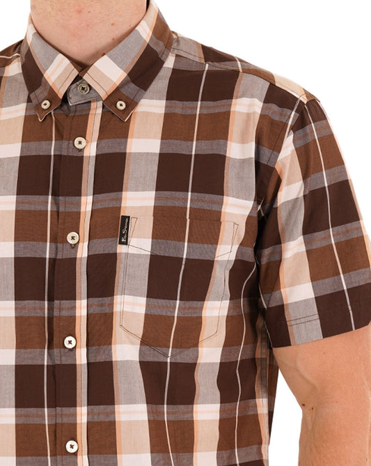 Ben Sherman Kurzarmhemd mit Karomuster, dunkelbraun
