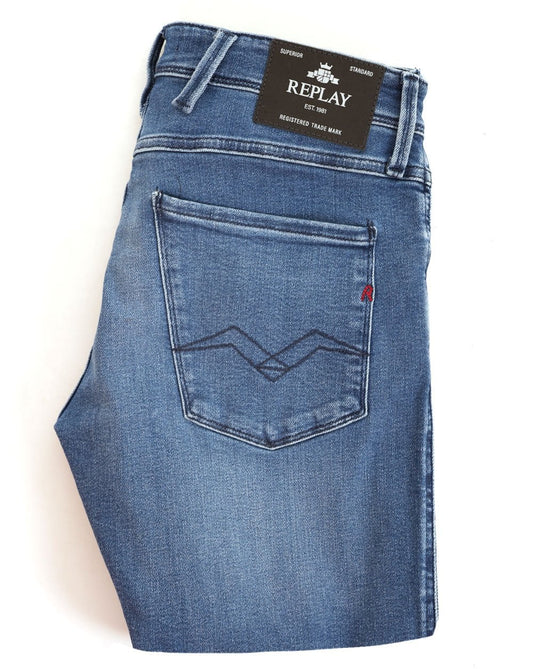 Replay Anbass Slim Fit Jeans Mittelblau