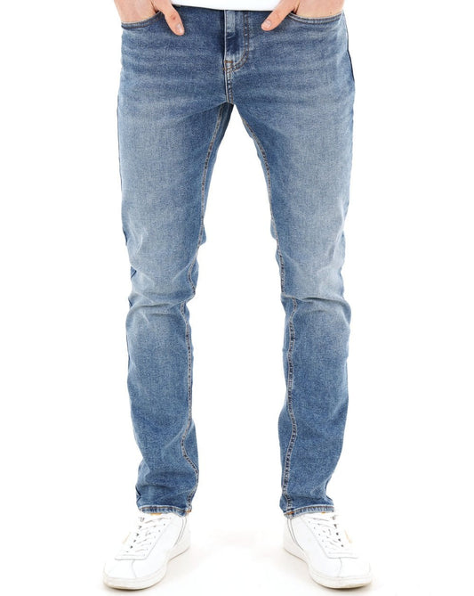 Mish Mash – Tapered Flex Jeans in Mittelblau
