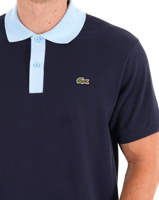 Lacoste L.12.12 Poloshirt mit Kontrastkragen Marineblau/Himmelblau