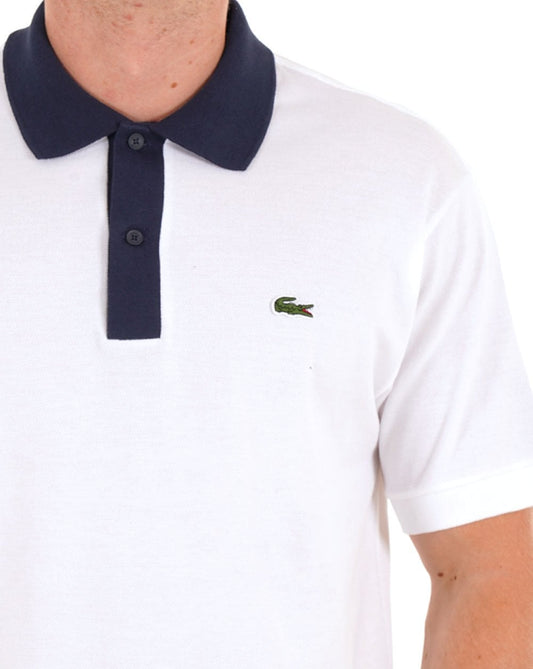 Lacoste L.12.12 Poloshirt mit Kontrastkragen Weiß / Marineblau