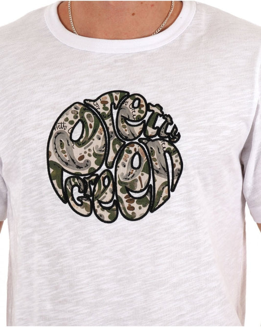 Pretty Green – T-Shirt mit Aquarell-Paisley-Applikation und Logo, Weiß