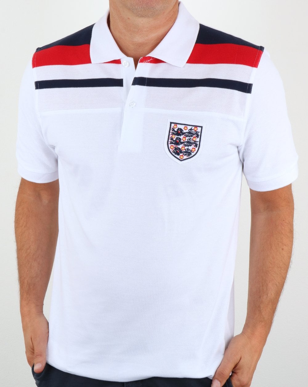 Eine großartige Neuauflage des englischen Retro-Fußballtrikots von 1982 im Polo-Stil mit Kragendetail. Das legendäre Löwenwappen auf der Brust. Ein authentisches Stück Retro-Geschichte, das mit den marineblauen und roten Details an den Schultern und der Zweiknopfleiste großartig aussieht.