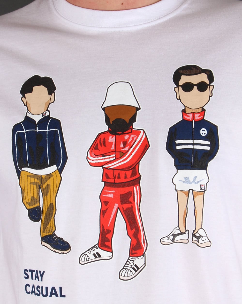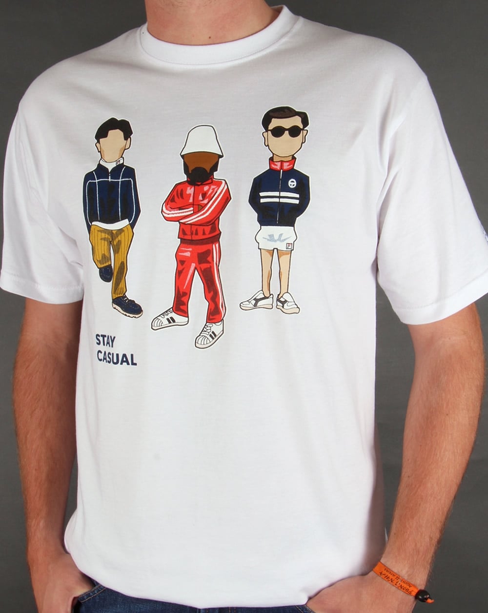 80s Casual Classics hat sich mit Minty zusammengetan, um das T-Shirt „STAY CASUAL“ mit drei klassisch-lässigen Kultfiguren zu kreieren. Es zeigt Mintys charakteristische handgezeichnete Karikaturen in lässiger Kleidung. Unser 80s Casual Classics-Logo erscheint auf dem Ärmel in einer Kontrastfarbe, die sich hervorragend vom Weiß abhebt. Einige der Outfits gehören zu den Must-haves für jeden 80er-Jahre-Retro-Liebhaber, und viele Artikel sind in verschiedenen Größen auf unserer Website erhältlich.