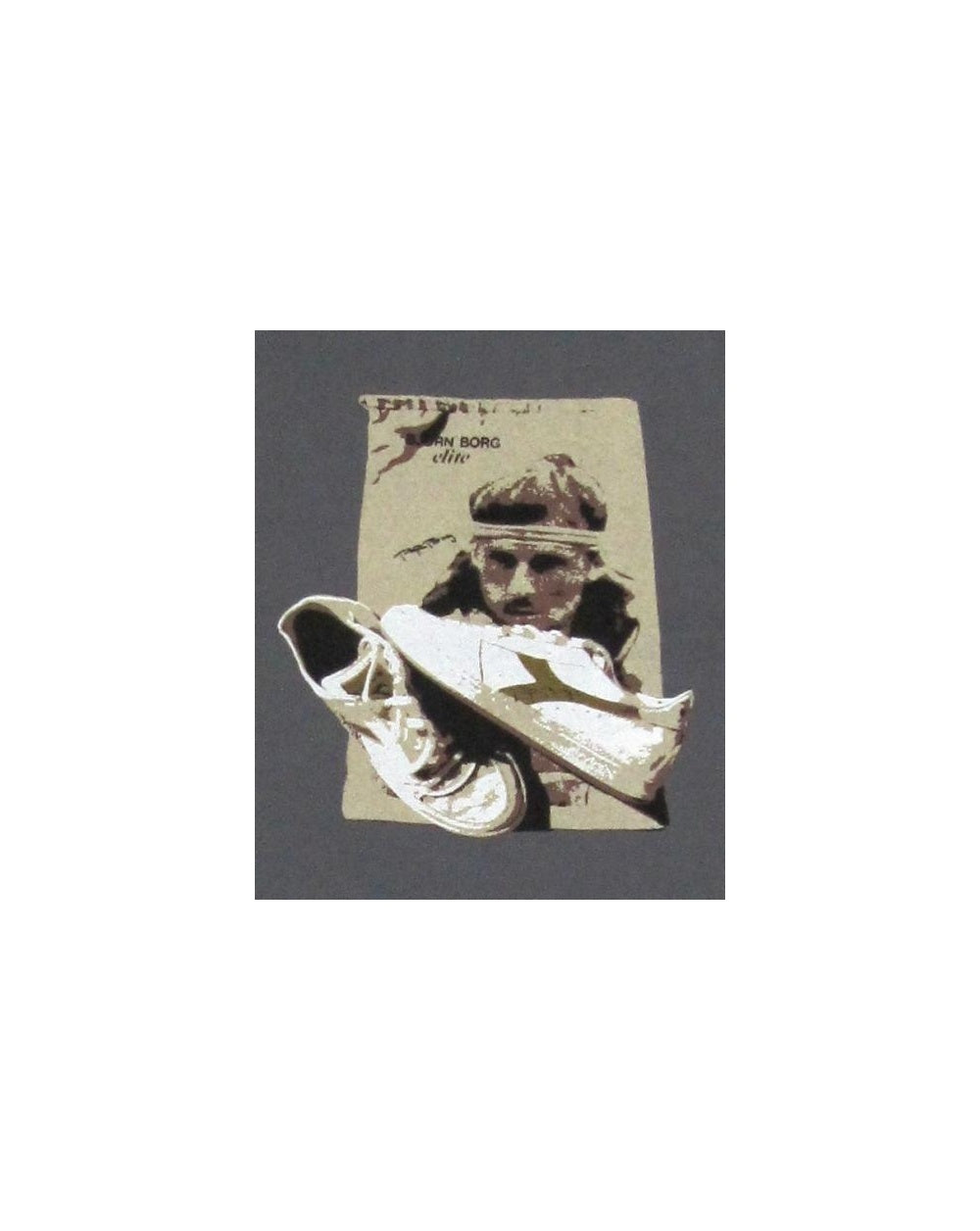 Dieses T-Shirt zeigt ein Bild von Björn Borg mit den klassischen Diadora Borg Elite Gold-Sneakern.