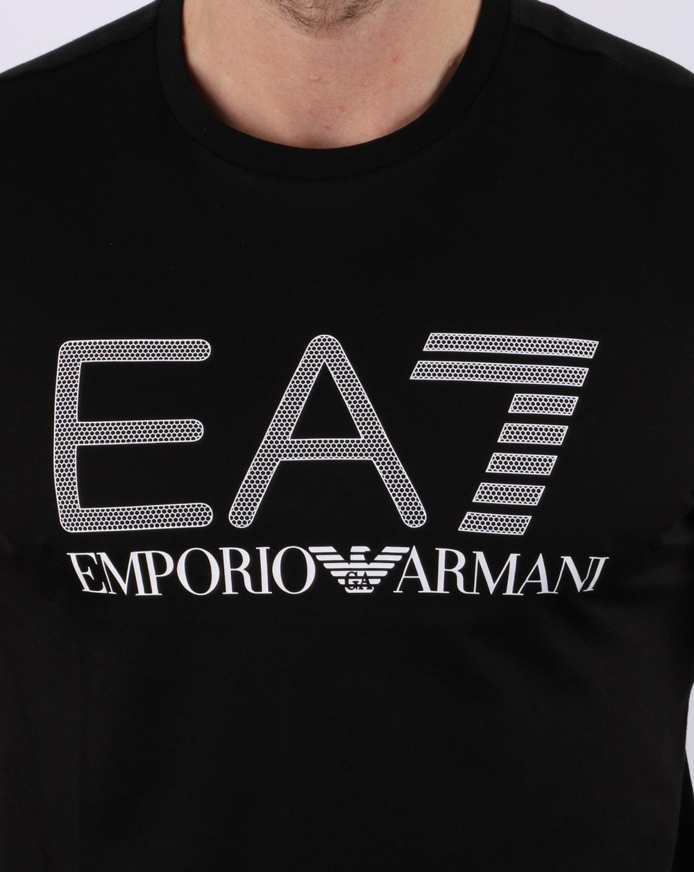 - Großer EA7-Logodruck auf der Brust