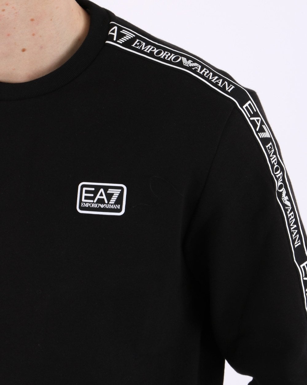 - EA7 – Schwarzes Sweatshirt mit Rundhalsausschnitt und Logo